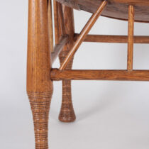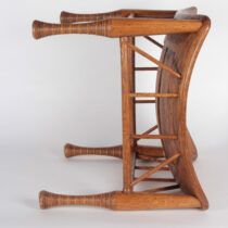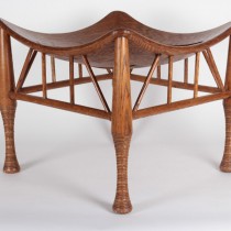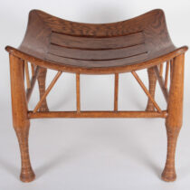 Four-legged Thebes stool circa 1890-95. Oak with highly figured grain, concave slat seat, turned details.