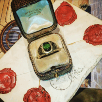 Louis C. Tiffany / Tiffany & Co. ring, 18K gold and oval green tourmaline, signed, c. 1900