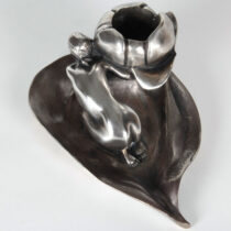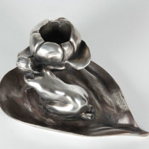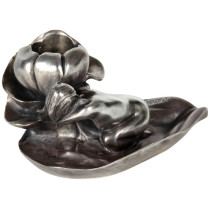 Silvered cast bronze in the form of a nymph on a leaf embracing a blossom