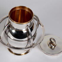 French silver (950 silver standard) in a structural form of a gyroscope with a lever for an interior lifting mechanism, gilding