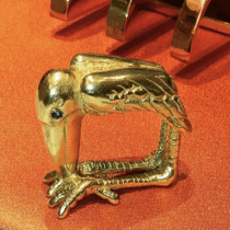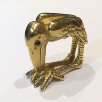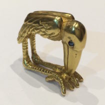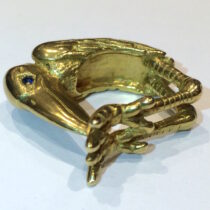 Moshe Oved (1883-1958) “Marabou Stork” ring, hand tooled lost wax 18K gold casting in full dimension as a complete biomorphic form of the bird and set with sapphire eyes, c.1940