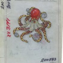 "Octopus" Brooch, 18K gold, coral, opals, diamonds and rubies