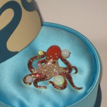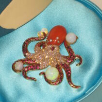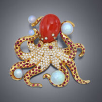 “Octopus” Brooch, 18K gold, coral, opals, diamonds and rubies