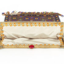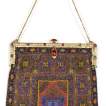 Oriental rug graphic micro beaded bag c. 1895