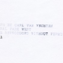 Signed: PHOTOGRAPH BY CARL VAN VECHTEN, 101 CENTRAL PARK WEST, CANNOT BE REPRODUCED WITHOUT PERMISSION (ink stamp on back); VII . CC . 12 (in ink on back)