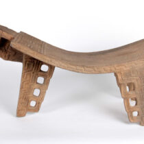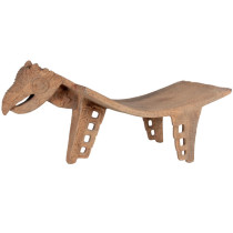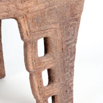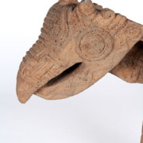 Volcanic stone carved with Greek key type designs, openwork feather details and finely detailed bird’s head and beak.