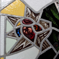Window of stained and hand-painted leaded glass