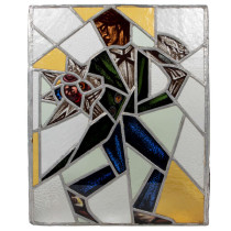 Reinhold Klaus / Carl Geyling Atelier Vienna “Man with top hat and flowers” stained glass window c. 1930