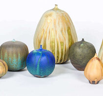 Rose Cabat was an American studio ceramicist living in Tucson. Considered one of the most important ceramic artists of the Mid-century Modernist movement, Cabat is best known for her innovative glazes on small porcelain pots called “feelies” which she developed in the 1960s. Her organic forms often resemble the shape of onions and figs, and her glazes range from organic to jewel tones. Cabat was born in 1914 in the Bronx, New York, began to work in ceramics in the late 1930′s, and moved to Arizona in 1942, where she continued to make innovative ceramics.