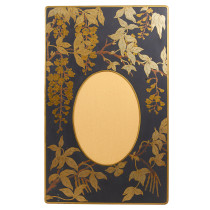 Elaborately detailed, acid etched and multi-patinated bronze table top photo frame with gilt details of a cascade of wisteria blossoms, leaves and vines.