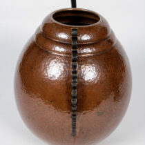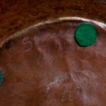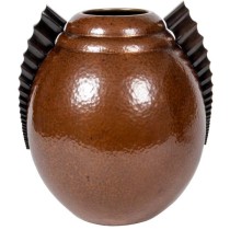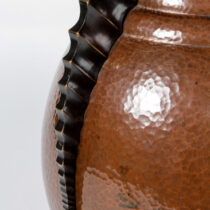 Hand wrought and hand hammered copper with a rich chocolate-brown