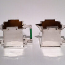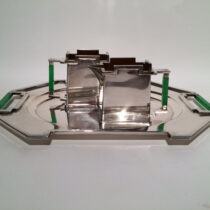 Silverplated brass with green bakelite handles