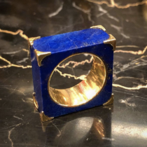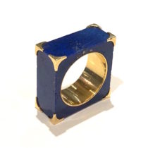 Tiffany & Co., Paris, / Georland, Paris, solid squared block of lapis lazuli in the shape of a ring and mounted in all eight corners and on the interior of the ring hole in 18k yellow gold, signed, pre-1952