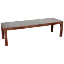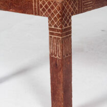Carved and ceruse oak with an incised diamond pattern pewter top