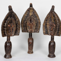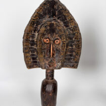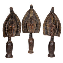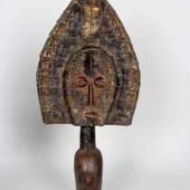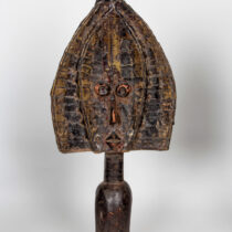 The art of Benin is the product of an urban royal court, and is meant to symbolize and to extol the power, mystique, grandeur, continuity, and endurance of the ruling dynasty and its governing institutions. From the 14th century until its fall in 1897, Benin was ruled by the Oba, a divine ruler at the head of the political system of titled chiefs. Under royal support, a number of craftsman’s guilds produced bronze, brass, and wood sculptures and embroidered cloth, all of which have become prized by museums and collectors.