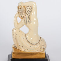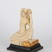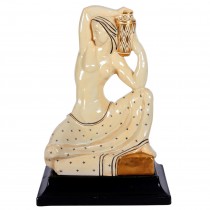 Art Deco Seated Female Figure with Draped Skirt and Holding an Art Deco Vase 1929