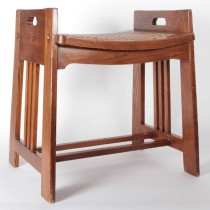 Wilhelm Schmidt was one of a number of avant-garde designers, along with M.H. Baillie Scott, Peter Behrens, and Henry van de Velde, who incorporated the traditional material of rattan, or wicker, into their furniture designs during the early part of the century. For this stool, the Viennese designer used rattan in the much same way that a furniture maker of his day would have used upholstery on seating furniture. It provides a supportive, yet yielding and therefore comfortable seat.